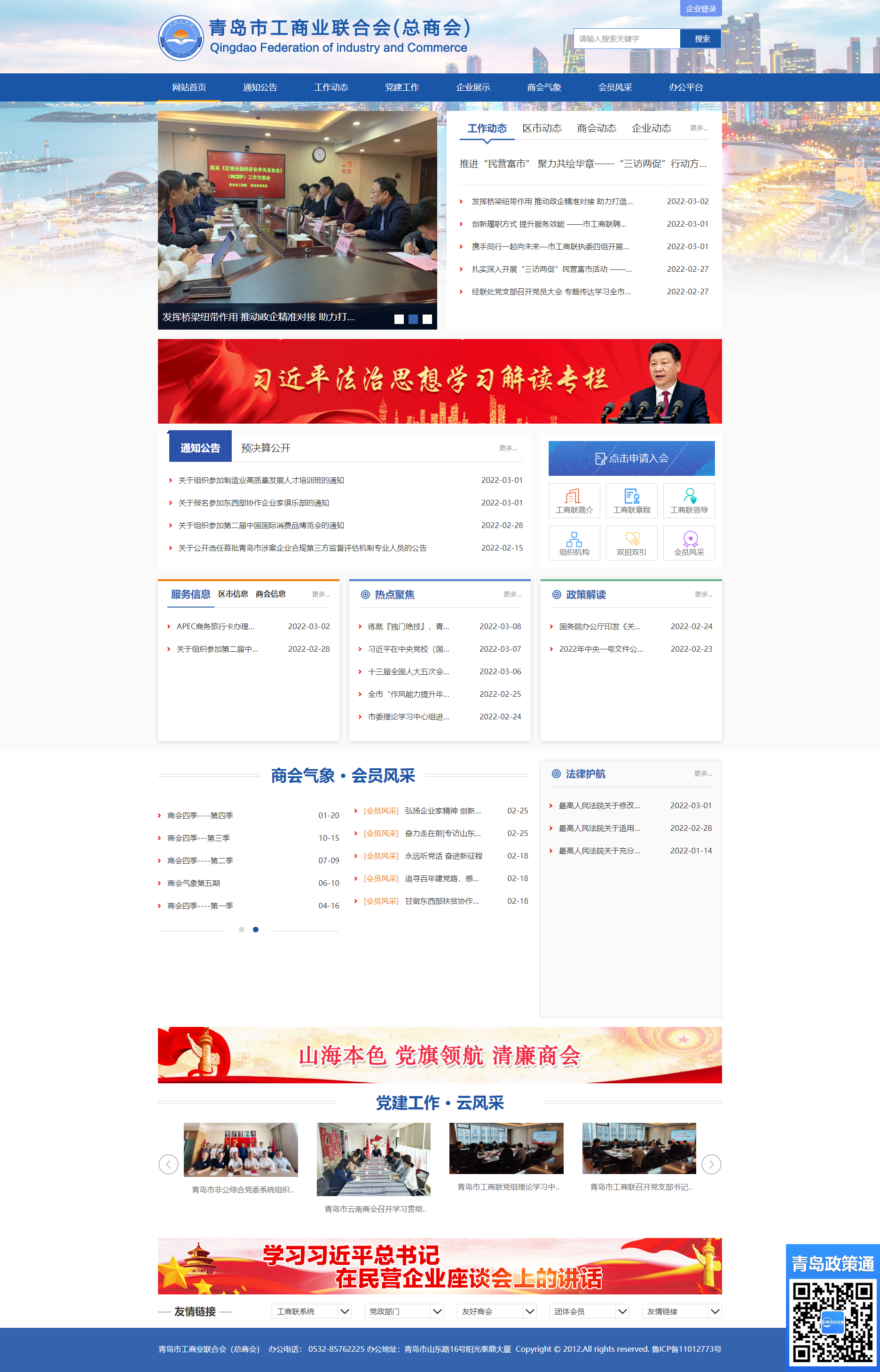 返回青岛市工商联成立于1952年6月,是中国共产党领导的青岛市工业界组成的人民团体和民间商会。是党和政府联系非公有制经济人士的桥梁和纽带,是政府管理非公有制经济的助手。全市建有12个区(市)工商联组织,170个乡镇(街道)商会;会员10318家;有装饰行业协会等团体会员92家和青岛市温州商会等12家直属商会。